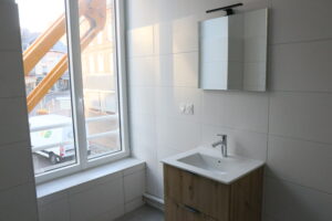 Les travaux sont sur le point de se terminer dans ce bâtiment qui comprend un local commercial et trois logements. Ces derniers étaient fortement dégradés et vacants depuis plus de 7 ans lorsque le propriétaire a acquis le bien en juillet 2024. 266 000 € de travaux ont été nécessaires pour réhabiliter l’ensemble. Les travaux ont porté sur les menuiseries extérieures et intérieures, l’isolation, la plomberie, l’électricité, le chauffage, la ventilation, la couverture…