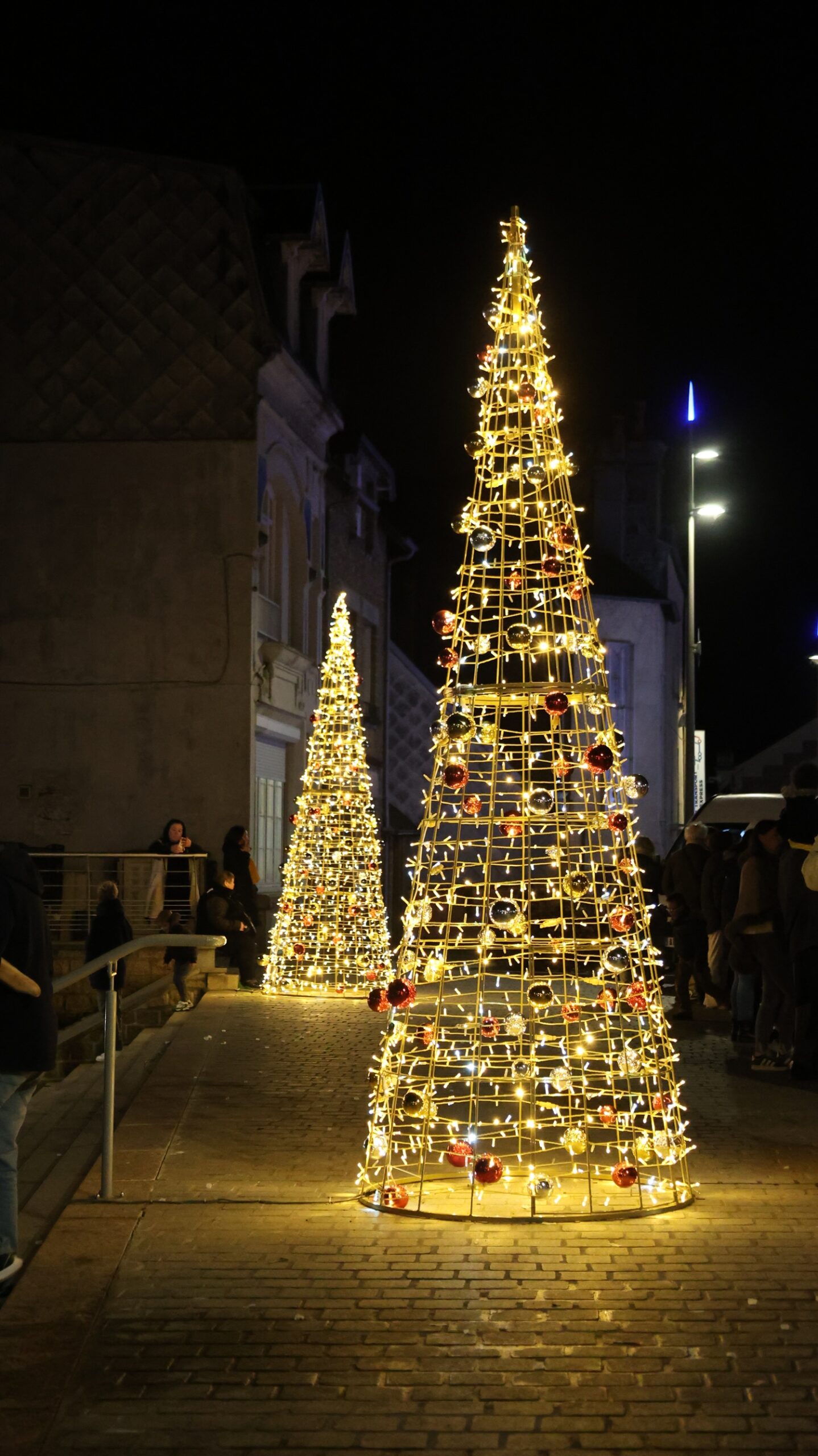Deux chapiteaux lumineux scintillant places du Général Leclerc et place Charles-de-Gaulle ;