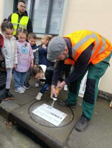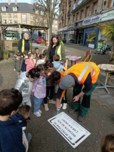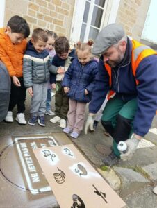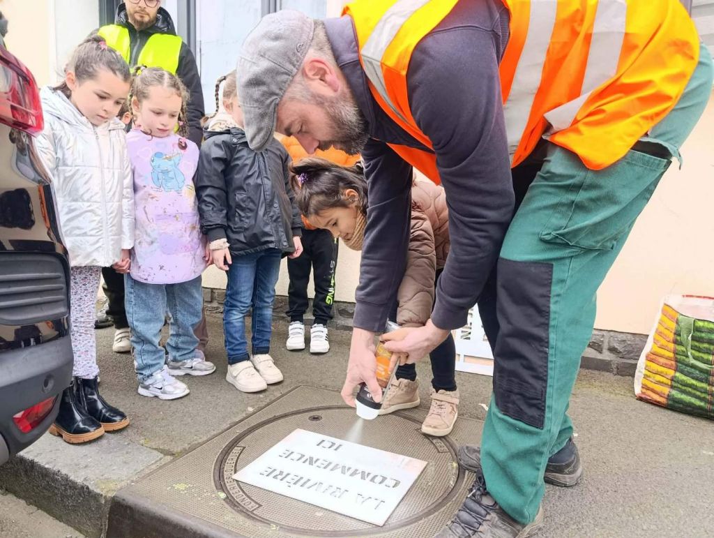 Lundi 23 mars 2026, dix-huit élèves de l'école maternelle Sévigné à Flers ont tagué des messages sur les bouches d’égouts invitant les habitants à ne plus jeter leurs déchets sauvagement.